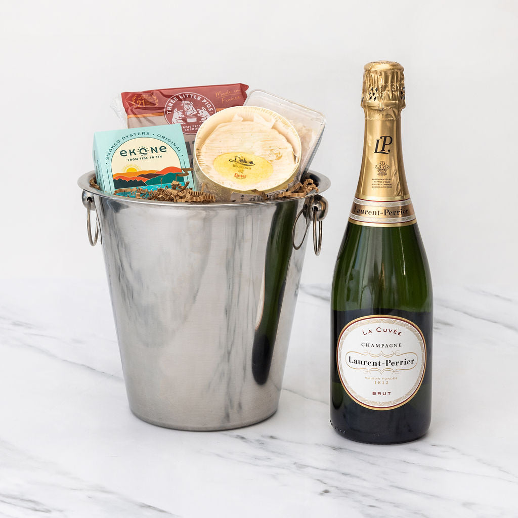 The old adage is "champagne goes with everything," so we paired one of our favorite Champagne houses, Laurent-Perrier, with an assortment of goodies; a decadent triple creme, honey comb and of course smoked oysters.